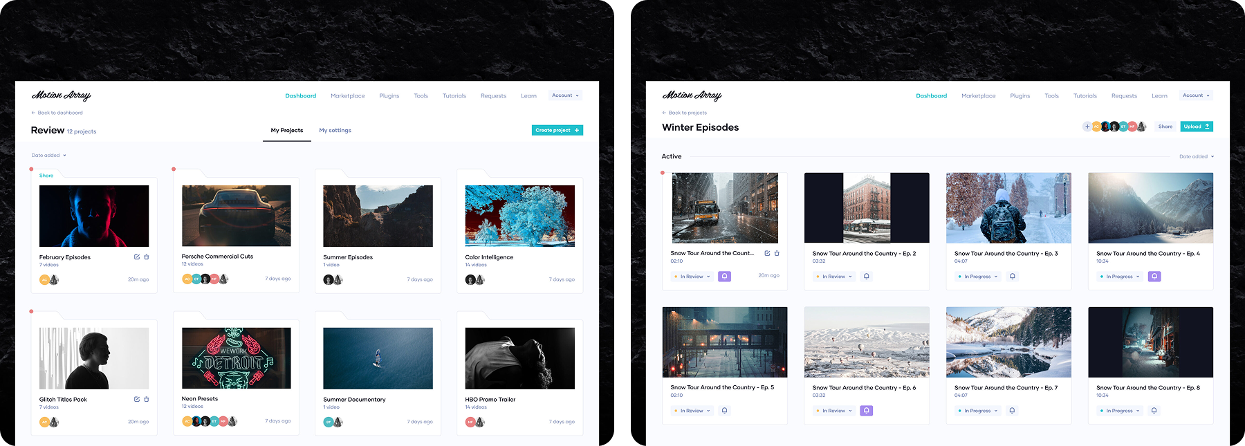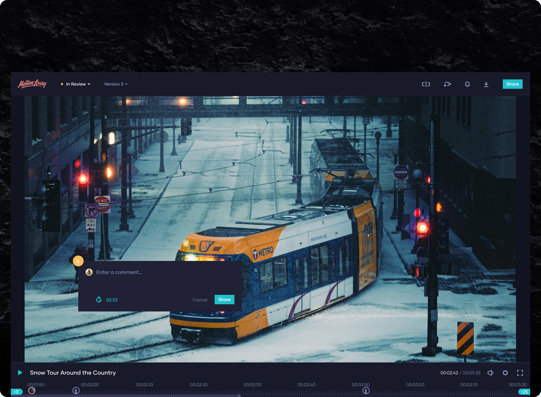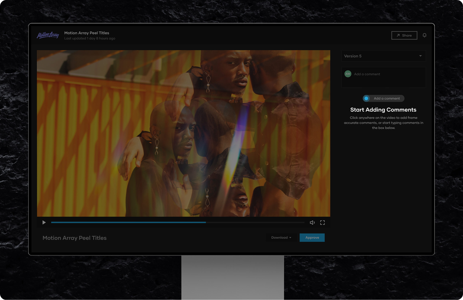Motion Array is the all-in-one video & filmmakers platform. Part of their product offering is the Review System, a video collaboration tool. It allows customers to upload videos and get frame-accurate feedback from clients or stakeholders.