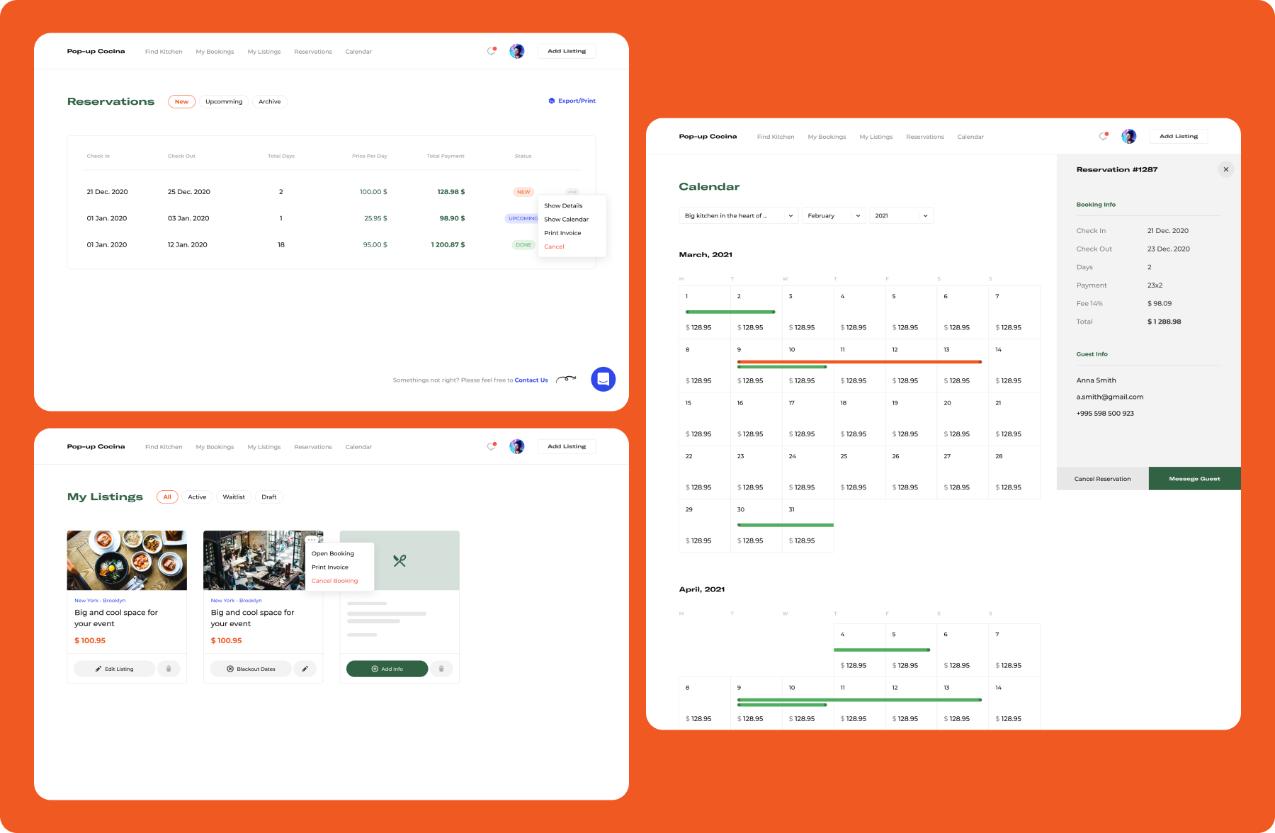 The host dashboard provides a centralized interface for efficient asset management. By categorizing listings into logical groups and offering dual view options list and calendar we empowered providers to oversee bookings with high-level visibility and granular control.