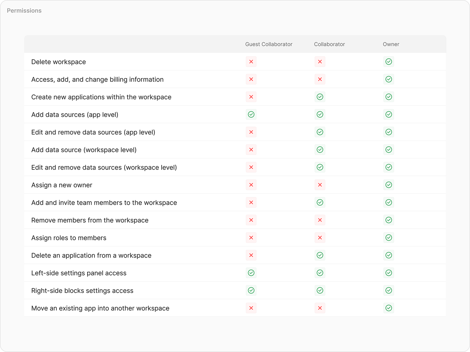 We introduced a role-based approach. Owners oversaw everything, including plans and collaborator invites. Workspace Collaborators managed projects but couldn’t alter plans. Guest Collaborators had limited access to specific apps, without full visibility into the entire workspace. By structuring access according to these roles, we reduced confusion and aligned the product with users’ mental models.